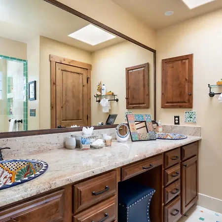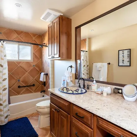 The villa is within 16 miles of Santa Fe Municipal airport and around 15 minutes' drive from such cultural points of interest as The Harrell House Bug Museum. The area gives access to such shopping venues as Santa Fe Plaza, situated 2.6 miles away. Slaughter Canyon Cave can be reached within a 10-minute drive of the Santa Fe accommodation.